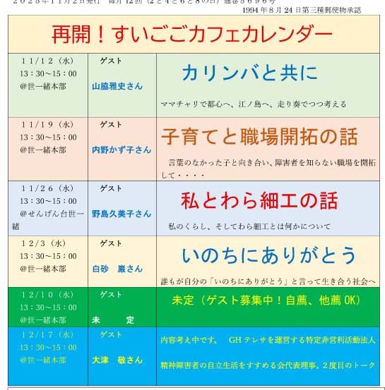 | 定款 [PDF版] 2017年度事業報告 [PDF版] 2017年度収支報告 [PDF版] 2017年度就労移行支援事業準備室会計報告 [PDF版] 2017年度貸借対照表 [PDF版] 2017年度財産目録 [PDF版] 2018年度事業計画 [PDF版] 2018年度収支予算 [PDF版] 2018年度就労移行支援事業収支予算 [PDF版] 2018年度理事・監事一覧 [PDF版] △以上全文 [PDF版] △第17回定期総会(2018.6.3) |