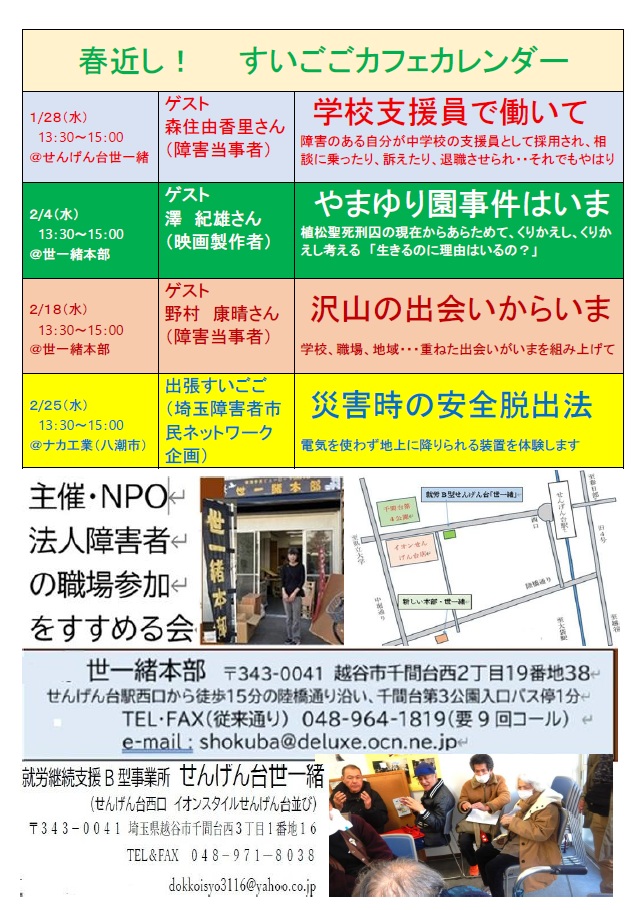 | 定款 [PDF版] 2017年度事業報告 [PDF版] 2017年度収支報告 [PDF版] 2017年度就労移行支援事業準備室会計報告 [PDF版] 2017年度貸借対照表 [PDF版] 2017年度財産目録 [PDF版] 2018年度事業計画 [PDF版] 2018年度収支予算 [PDF版] 2018年度就労移行支援事業収支予算 [PDF版] 2018年度理事・監事一覧 [PDF版] △以上全文 [PDF版] △第17回定期総会(2018.6.3) |