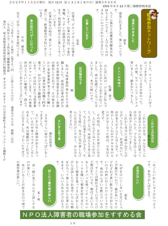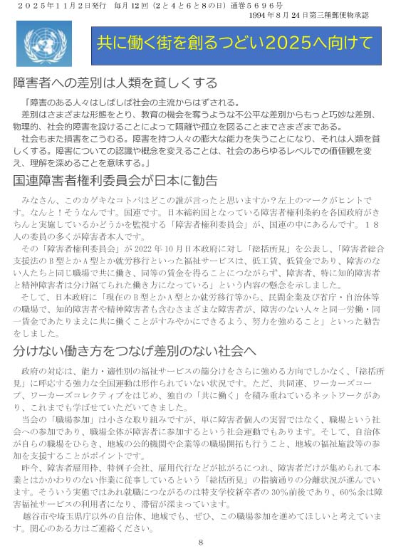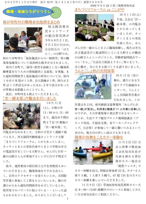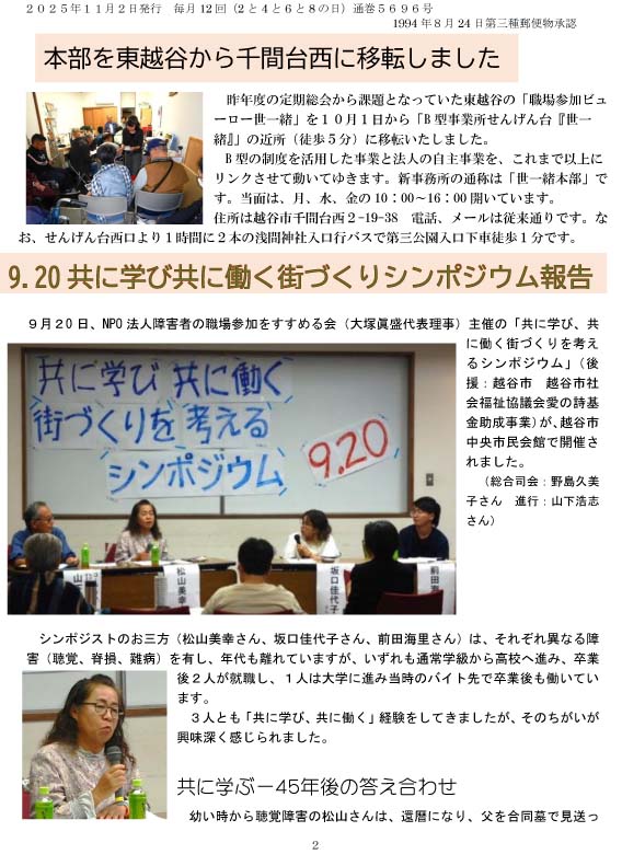 〒343-0023 越谷市東越谷1-1-7 須賀ビル101 職場参加ビューロー・世一緒(よいしょ)内